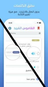 فضلًا عن دعمه لنسخ الكلمات والمعاني عبر الضغط المطوّل على الكلمة، هل انتهينا؟ طبعًا لا، فالرائع في هذا القاموس أنه يدعم نطق الكلمات ويدعم في ذلك اللغة العربية بالإضافة إلى اللغة الانجليزية باللكنة البريطانية والأمريكية، مع إمكانية تحسين الصوت او تغيير الصوت “رجل، امرأة” من إعدادات النظام نفسه، أخيرًا تطبيق القاموس الفريد متاح للتحميل بشكل مجاني وكامل من على متجر أبل ستور، على أن يدعم iOS 10.3 فأحدث.