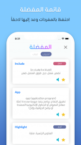 كما ولا يحتاج منك القاموس الضغط على أي شيء للاستدلال على معنى أي كلمة، فكل ما عليك هو كتابة الكلمة في واجهة جميلة ونظيفة وسيظهر المعنى فورًا دون الضغط على أي شيء، وهناك تبويب المفضلة الذي يضم الكلمات المهمة والتي تكثر عملية البحث عن معناها، بالتالي ستكون إمكانية الوصول سريعة جدًا من خلال هذا التبويب.