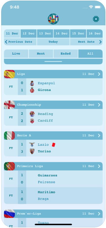 تطبيق Live Results Football يقوم بتغطية جميع التفاصيل التي تجعلك دوما في الواجهة وعلى اطلاع بكل ما يجري في أشهر دوريات كرة القدم، وبالضبط الدوريات الأوروبية المختلفة في كرة القدم