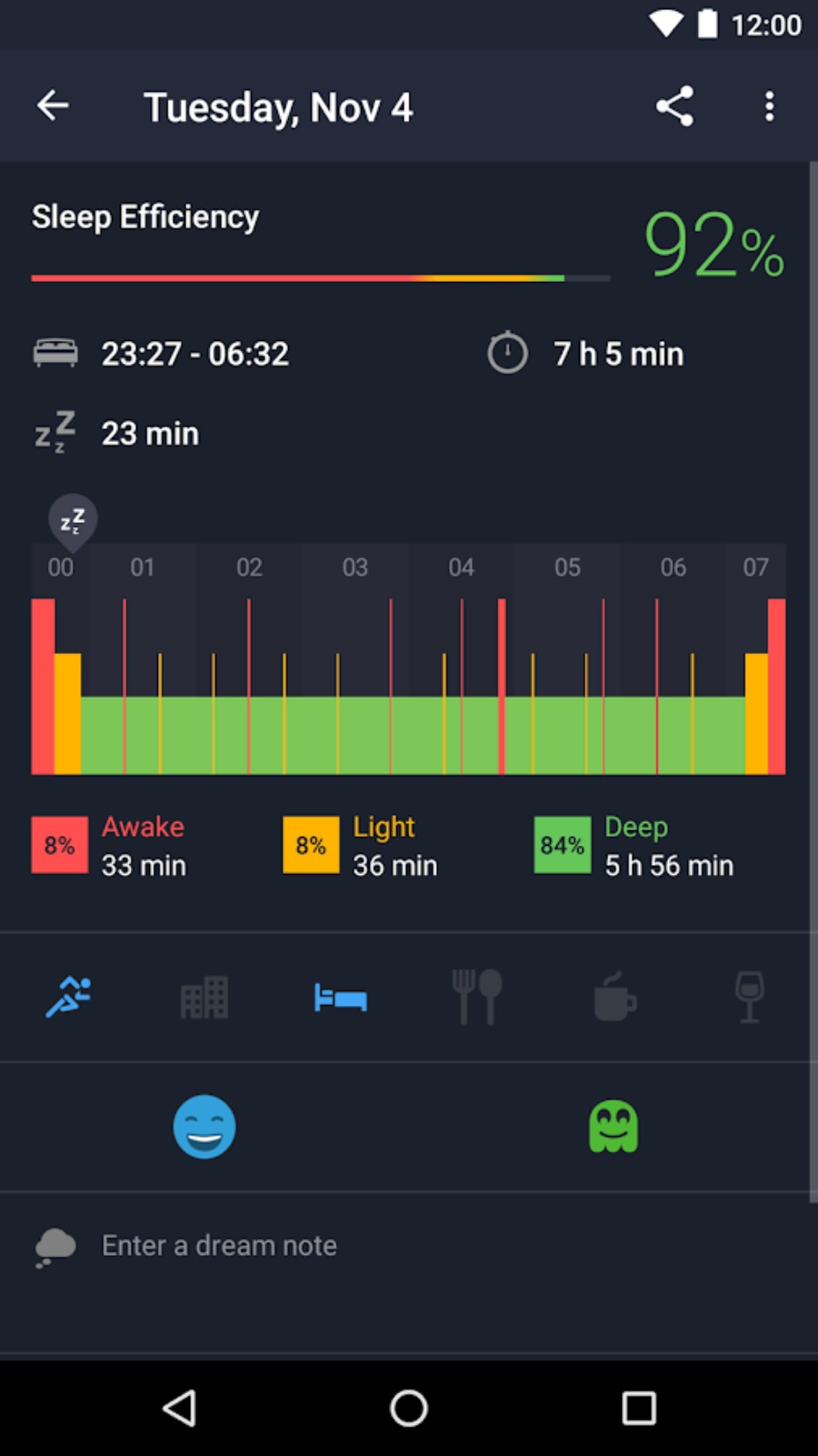 يقوم التطبيق بتعقب دروة نومك ومراقبة أحلامك ومساعدتك على تحسين عادات نومك والإستيقاظ بشكل أفضل من قبل وذلك من خلال: