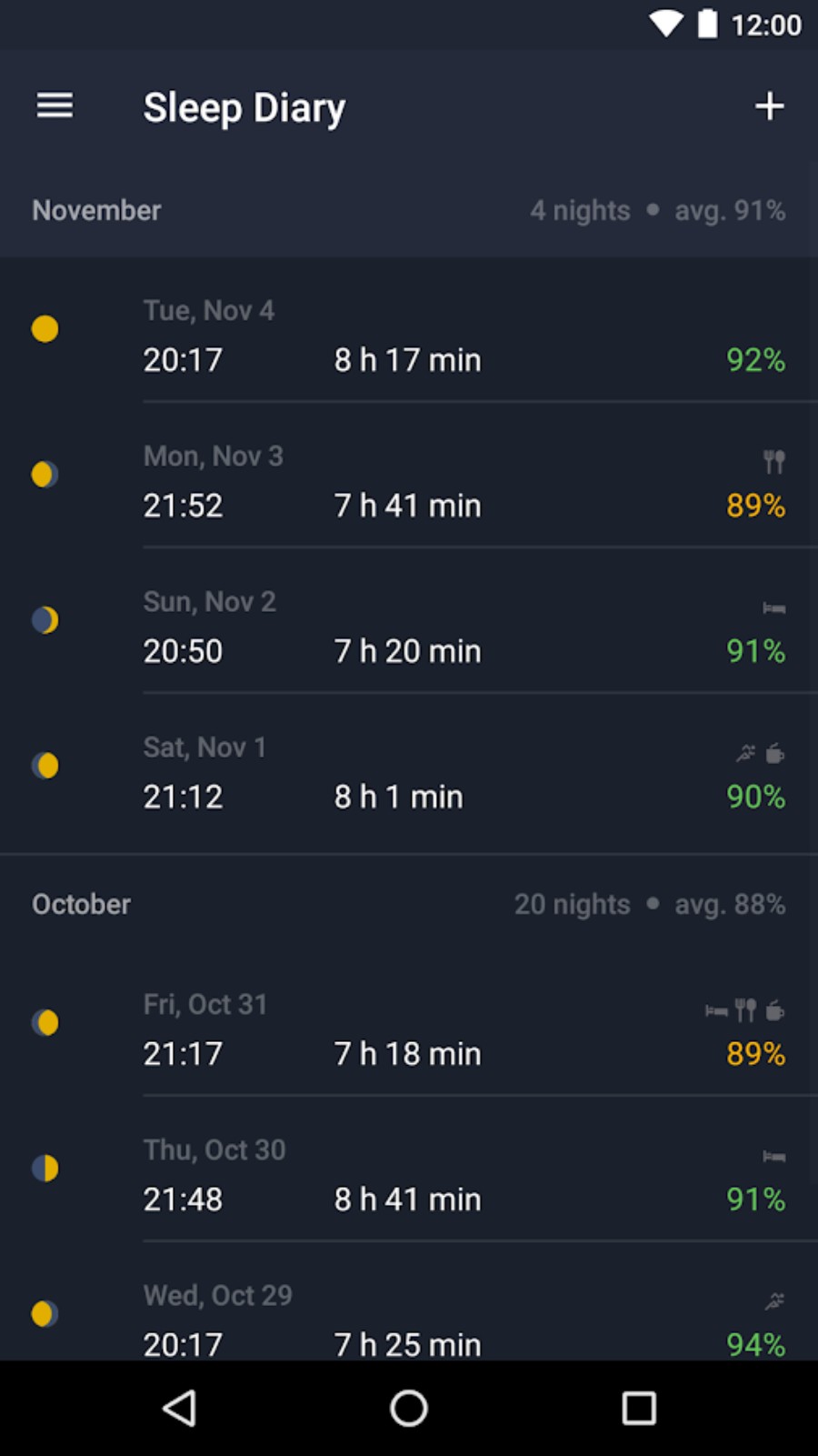 • يقوم التطبيق بتعقب مراحل نومك والوقت الذي تقضيه مستيقظا قبل النوم.