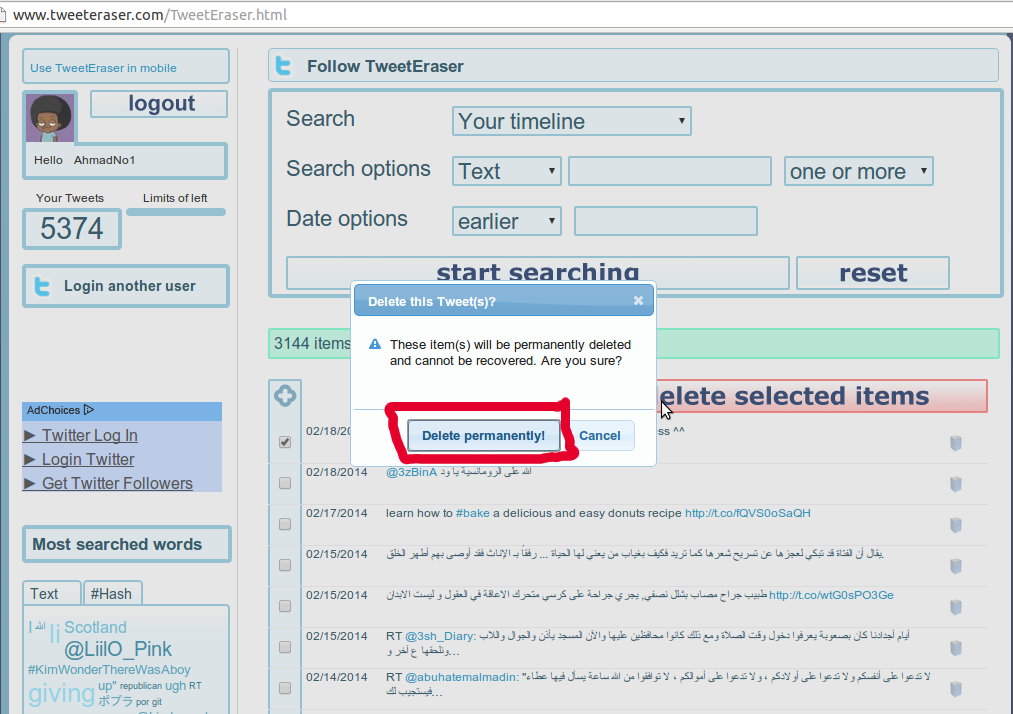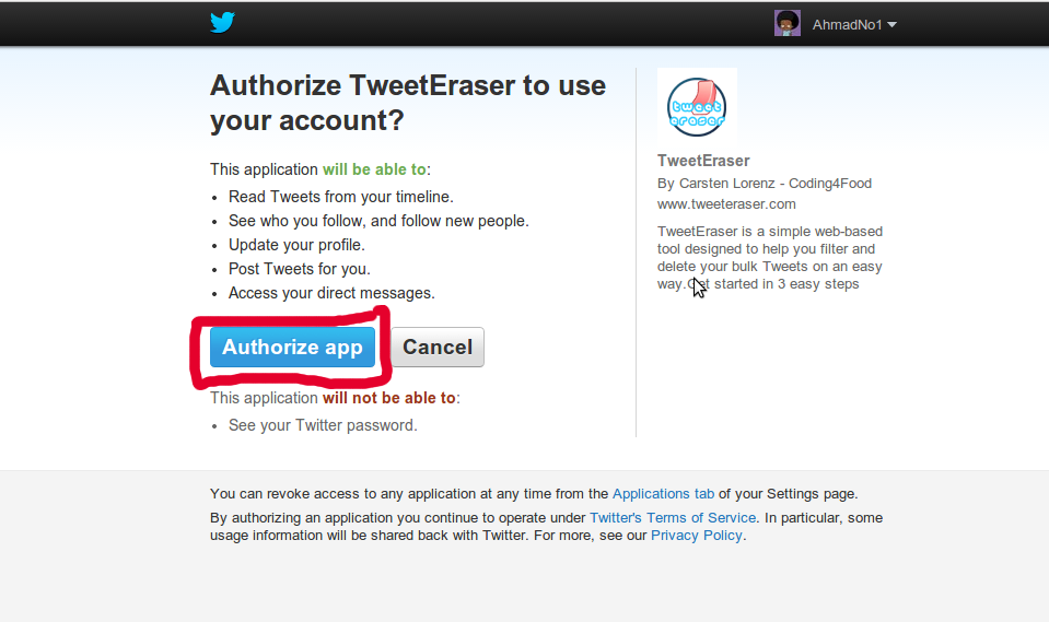 تطبيق “tweeteraserr” يمكنك بهذا التطبيقأن تحدد مسح الرسائل أو التغريدات أو ما يسمى “timeline” .