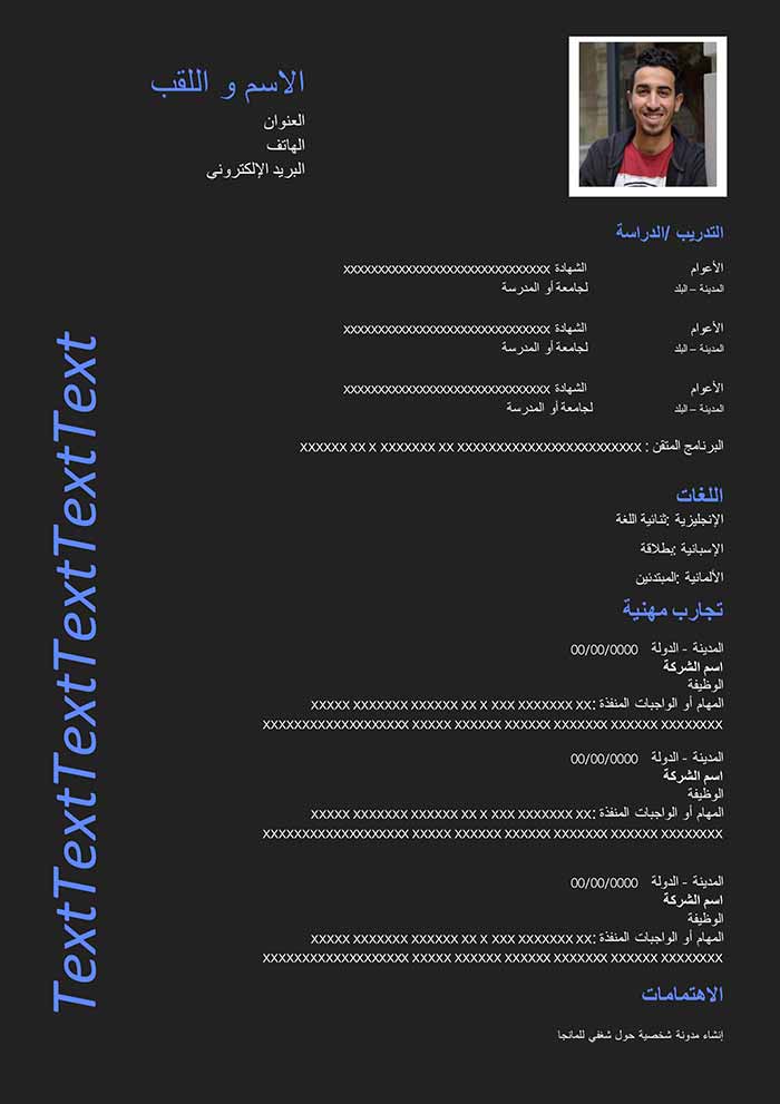 هذا نموذج من السيرة الذاتية مجاني و قابل للتحميل و التعديل مثالي لكل نوع من ملفات الوورد . تسليط الضوء على المهارات سيمثل ميزة مهمة . سواء كنت طالب ، مدير أو موظف، هذا النموذج من السيرة الذاتية المجاني قادر بالتأكيد على التأقلم مع احتياجاتك. هذا النوع من السير الذاتية مثالي لتقديم تجاربك المهنية. كما يحتوي أيضاً على فقرة في أعلى السيرة الذاتية للإشارة إلى نقاط قوة ملفك. فكر في اختيار عبارة لفت إنتباه جيدة لبدء هذه الفقرة. و إذا كنت ترغب في الحصول على سيرة ذاتية باللغة الإنجليزية، قم بتنزيل هذه السيرة الذاتية و ترجمة الأقسام المختلفة.