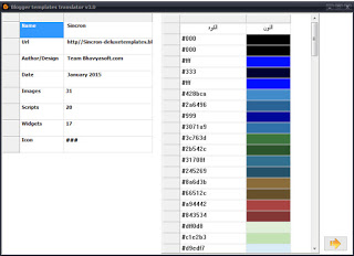 هذا الاصدار به أداة لعرض معلومات حول القالب ستجد فيها اسم المصمم ان وجد و رابط مدونته و ألوان القالب .