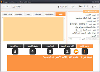 البرنامج سهل الاستخدام بالنسبة للاصدارات السابقة . كما أنه يوجد شرح بسيط بداخل البرنامج . فكل ما عليك هو الضغط على الزر قالب و اختيار القالب المراد تعريبه .